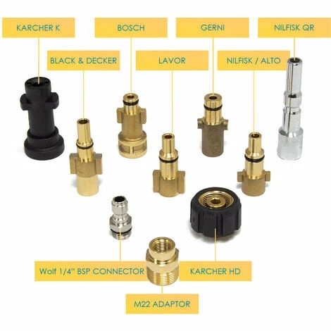 If you were wondering what pressure washer the Wolf Snow Foam Applicator will work with, well we have good news! Supplied are 10 different attachments which fit the following popular pressure washers ensuring you have the right connector for your machine.